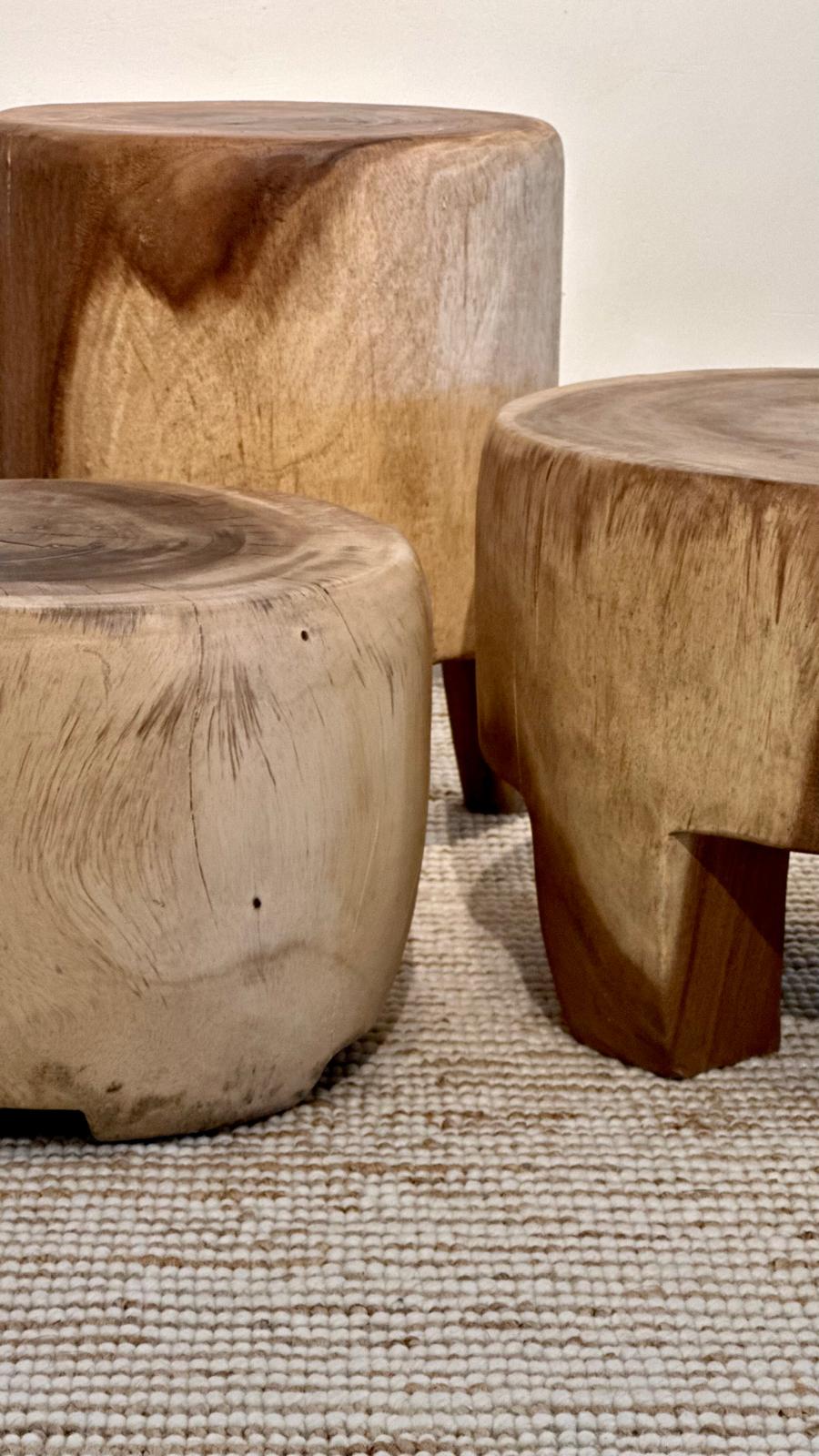 Executed in suar wood in it's purest form, shaped, sanded but left all natural. During use the wood might get little cracks as part of the natural process ( drying, heating, exposure to sunlight)